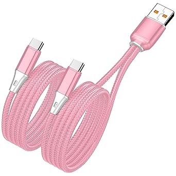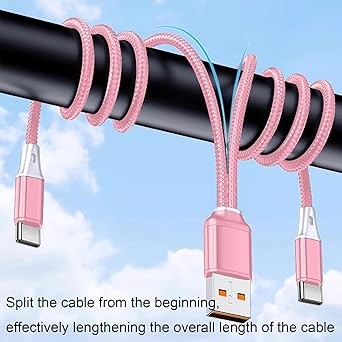 4FT Dual USB C Multi Type C Splitter Cable, 2 in 1 Multi Charging Cable Nylon Cord, USB A to Double USB C Port Compatible with Apple i-Phone 15, iPad Pro/Air, Sam-sung S24,Moto, Google Pixel 8,LG,Pink