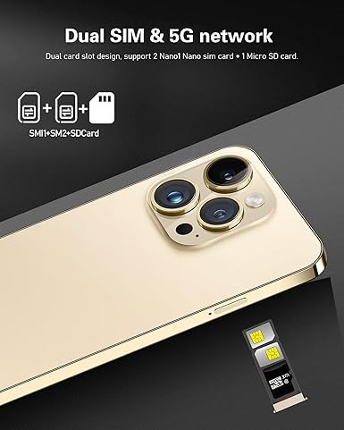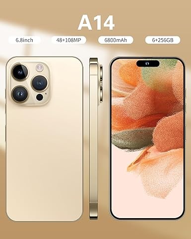 A14 Pro Max 5G Unlocked Smartphone, 6GB+256GB Fully Unlocked Cell Phones for Android 13, 6.82" Unlocked Cell Phone, 6800mAh, 48MP Front Camera+108MP Main Camera (Gold)