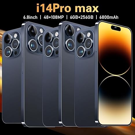A14 Pro Max 5G Unlocked Smartphone,6GB+256GB, for Android 13, 6.8" FHD Unlocked Cell Phone, 6800mAh, Battery Fast Charging,48MP+108MP Dual Camera/Dual SIM/Face ID 5G Phone (Dark Blue)