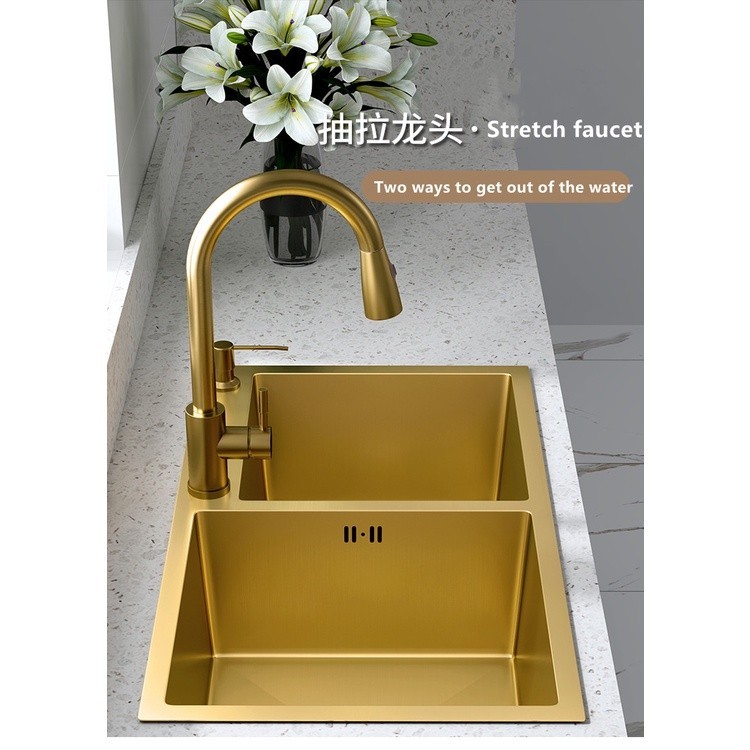 Gold Sink 304Stainless Steel Single Bowl Kitchen Sink Single Bowl Kitchen Sink Gold Drain 80x45cmproduct made of sus 304 stainless steel 3MM Strong for