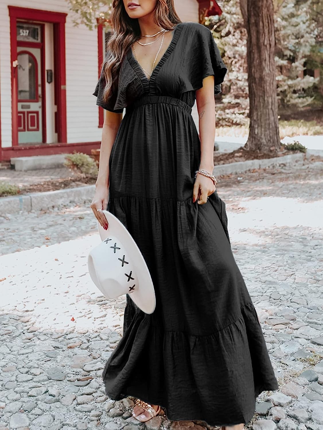 • ?Style -Maxi Dresses for women Summer, Casual Summer Beach Boho Long Dresses,Soft stretchy high waist Dress,Flowy Long Dress,Elegant V neck Empire Waist pleated Party Dress,Maternity maxi dress.Suitable for Spring,Summer and autumn easy to carry out for many occasions-beach/casual/party/evening/wedding/home/Holiday ect