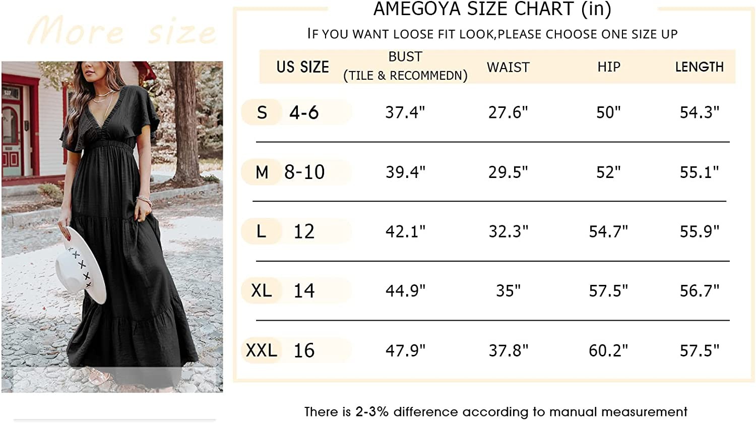 Amegoya Women's Casual Short Sleeve V Neck Floral Maxi Dresses Boho Beach Photoshoot Flowy Ruffle Long Dress