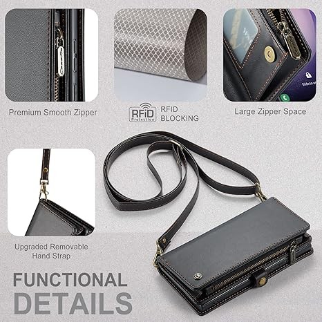 [Multi-Function]:8 card slots,1 cash slot and 1 zipper wallet design case will carry your Driver’s license, credit, gift cards,debit cards,coins,reciepts and cash,it meets all the demand in your everyday life and business trip.Easily Convertible to act as stand case and position your phone case as stand for videos ect