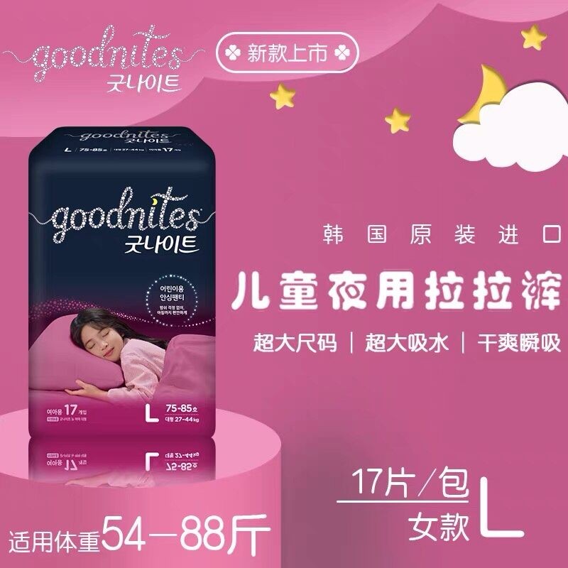 Authentic Korean GoodNites Night Safety Pants No. L Baby GIRL'S Children's Pull-up Pants Oversized Size Children's Pants