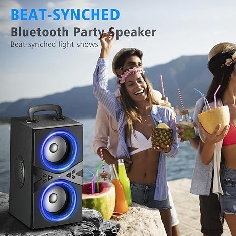 Bluetooth Speakers, Wireless TWS Portable Speaker with Lights,100dB Loud Subwoofer 80w(Peak) Stereo Sound, Bassup Technology, Long Playtime for Outdoor Party