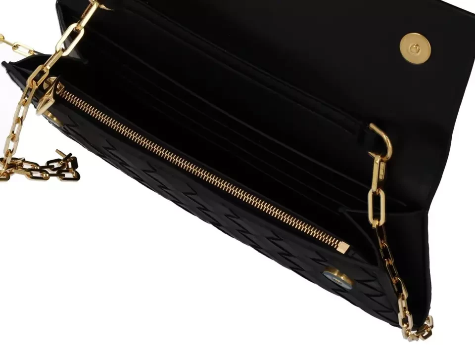 BOTTEGA VENETA Shoulder Bag Woven Fold Over Intrecciato Black Gold NEW RRP1535