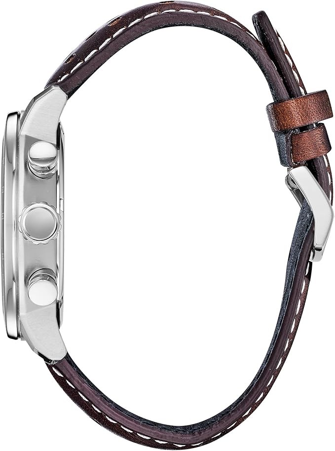 Citizen Men's Eco-Drive Weekender Brycen Chronograph Watch in Stainless Steel, Brown Leather strap, Blue Dial (Model: CA0648-09L)
