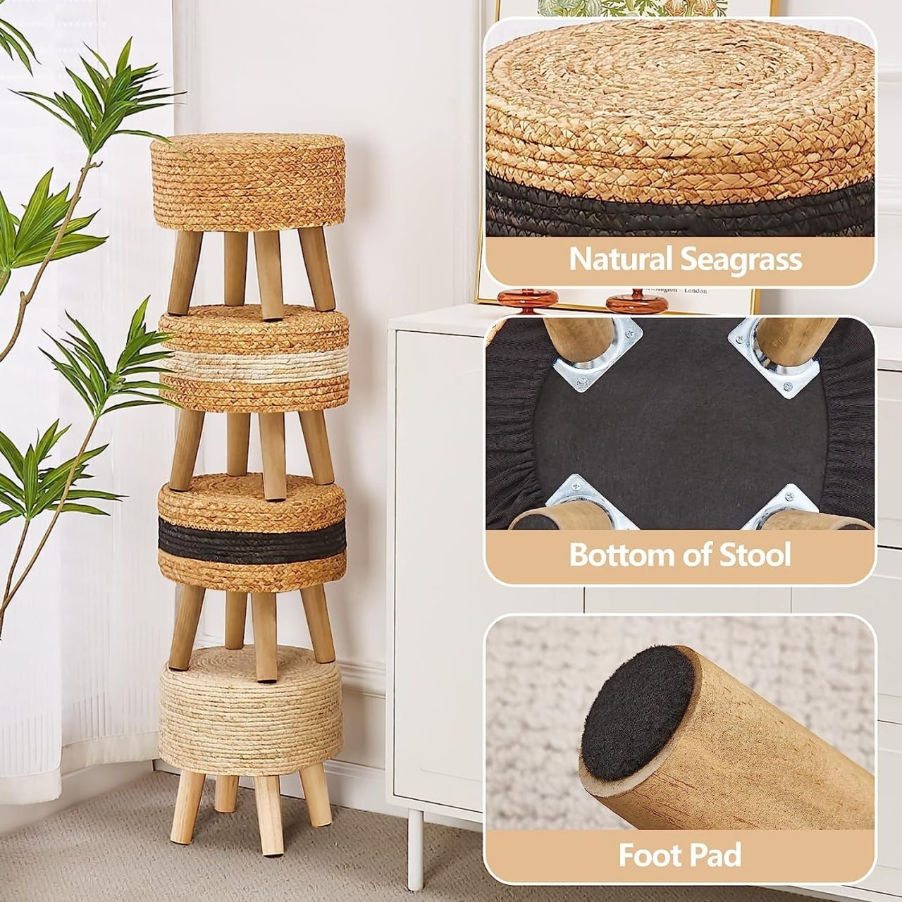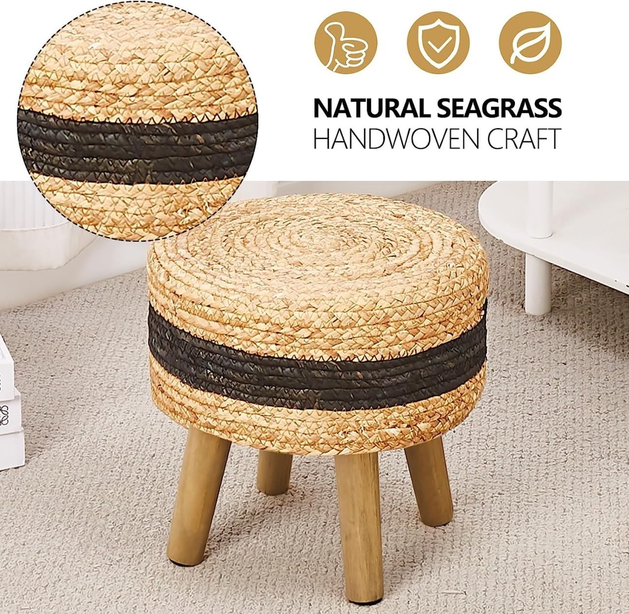 Cpintltr Round Ottoman Natural Seagrass Footstool Hand Weave Water Hyacinth Poufs Eco Friendly Sofa Foot Stool Soft Step Stool Padded Foot Rest with Pine Legs f