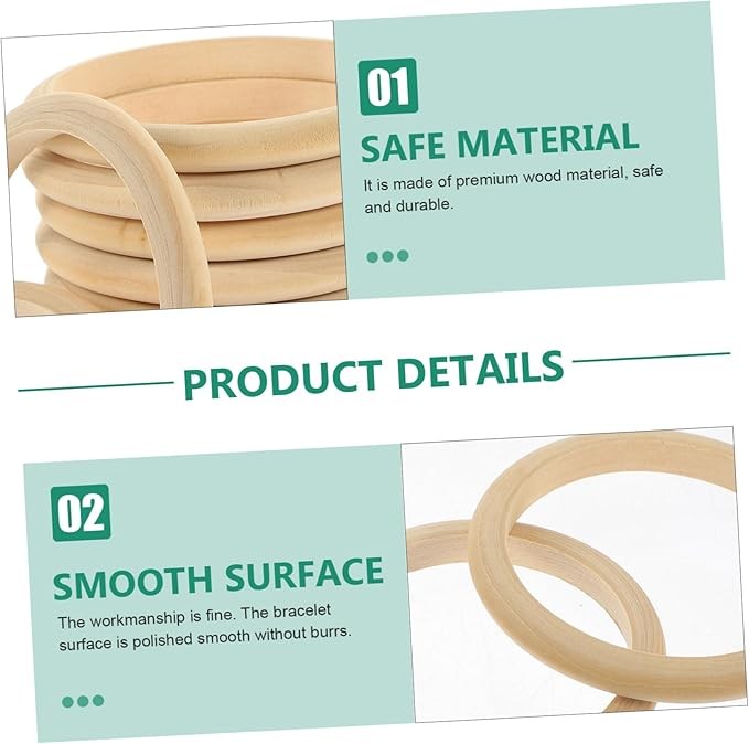 • Wood bangle bracelets-- this set contains enough quantity of unfinished wooden rings to meet your different kinds of DIY craft needs