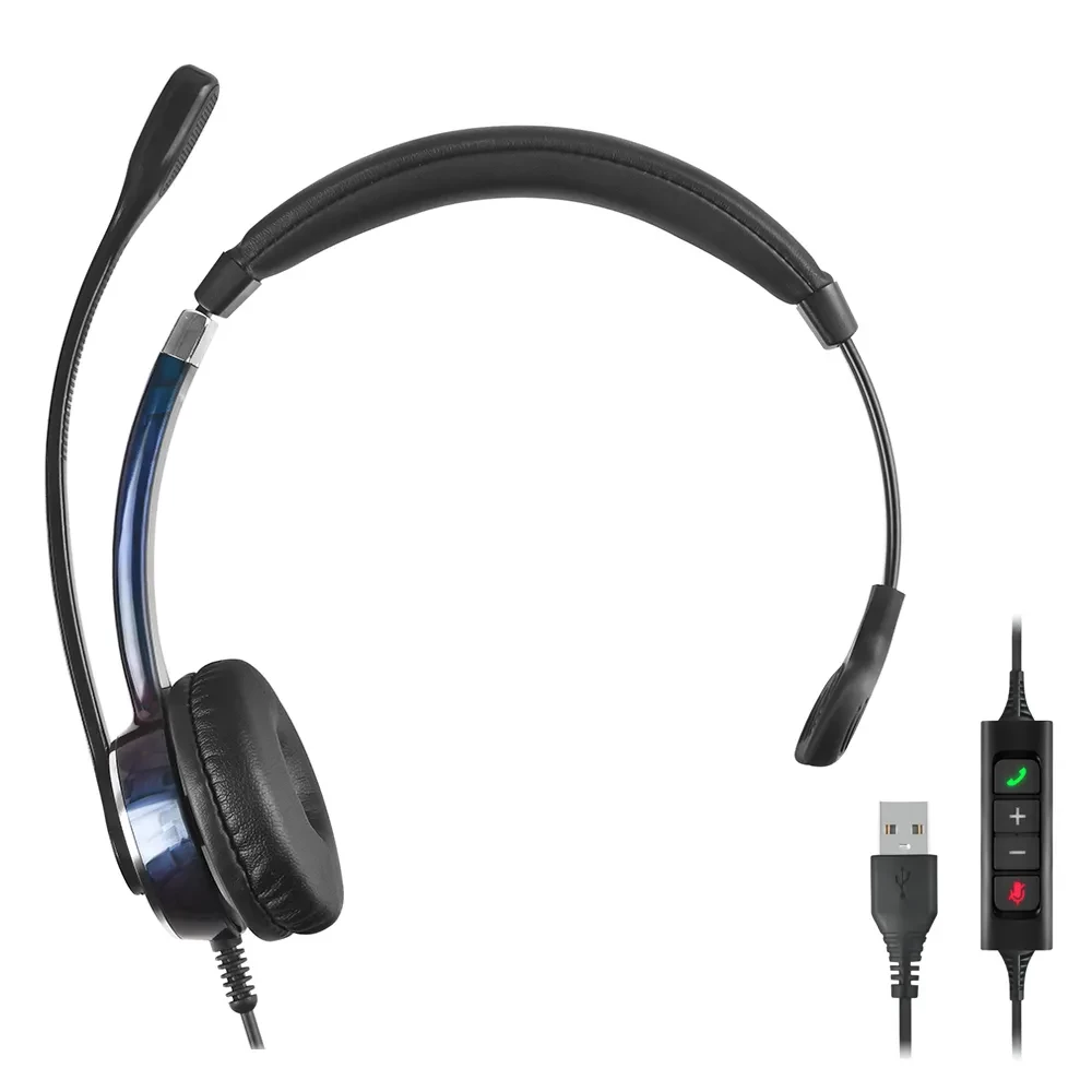 Factory Price Call Center Business Single Ear Headset Noise Cancelling Wired Headphone With Mic And Inline Controller For PC