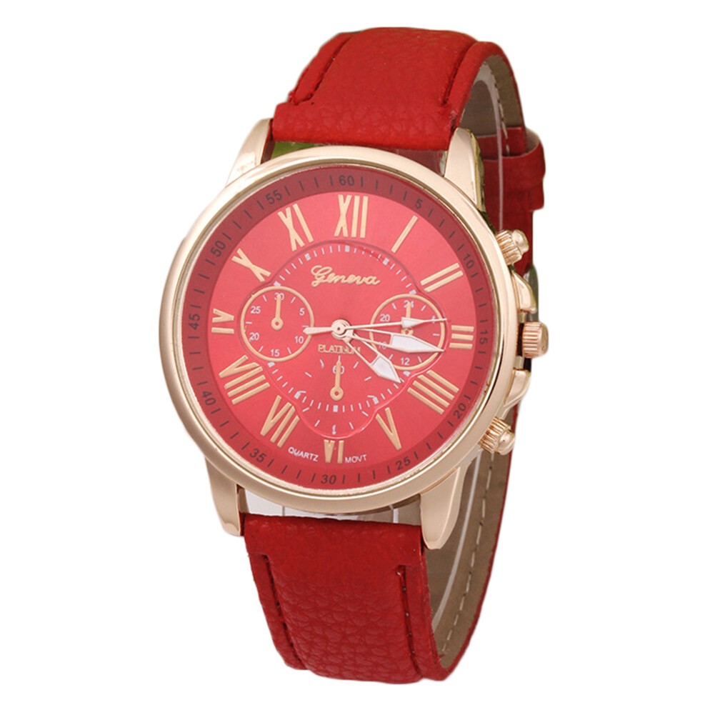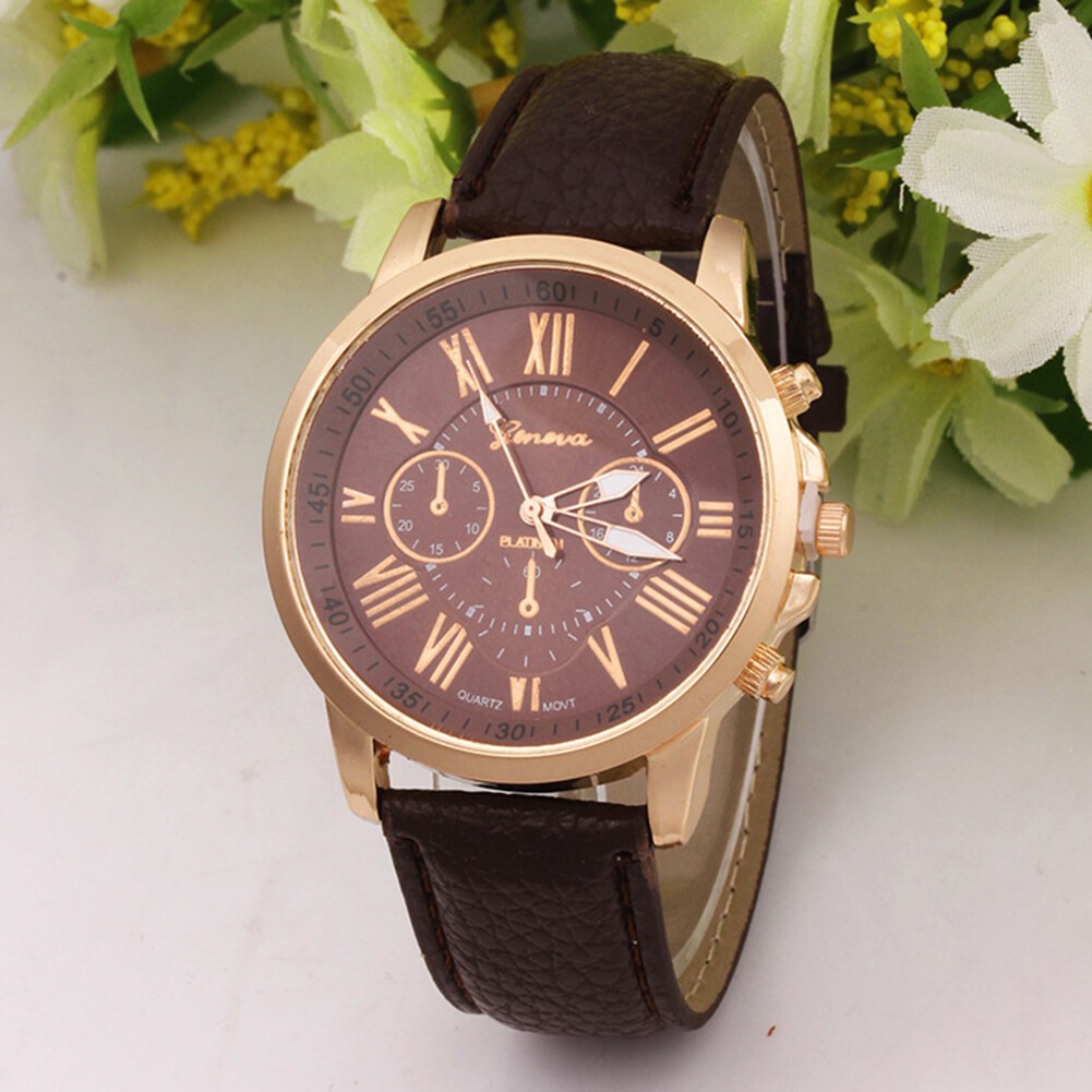 Fashion Women Faux Leather Roman Numerals Decorative Dials Quartz Wrist Watch