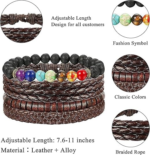 • BRAIDED LEATHER BRACELET--Hemp wood bead leather wristbands bracelet set ,Including lava rock bracelet chakra bead hemp cords,wood beaded and genuine leather bracelet wrap,can easy match your everyday need,the most economical set
