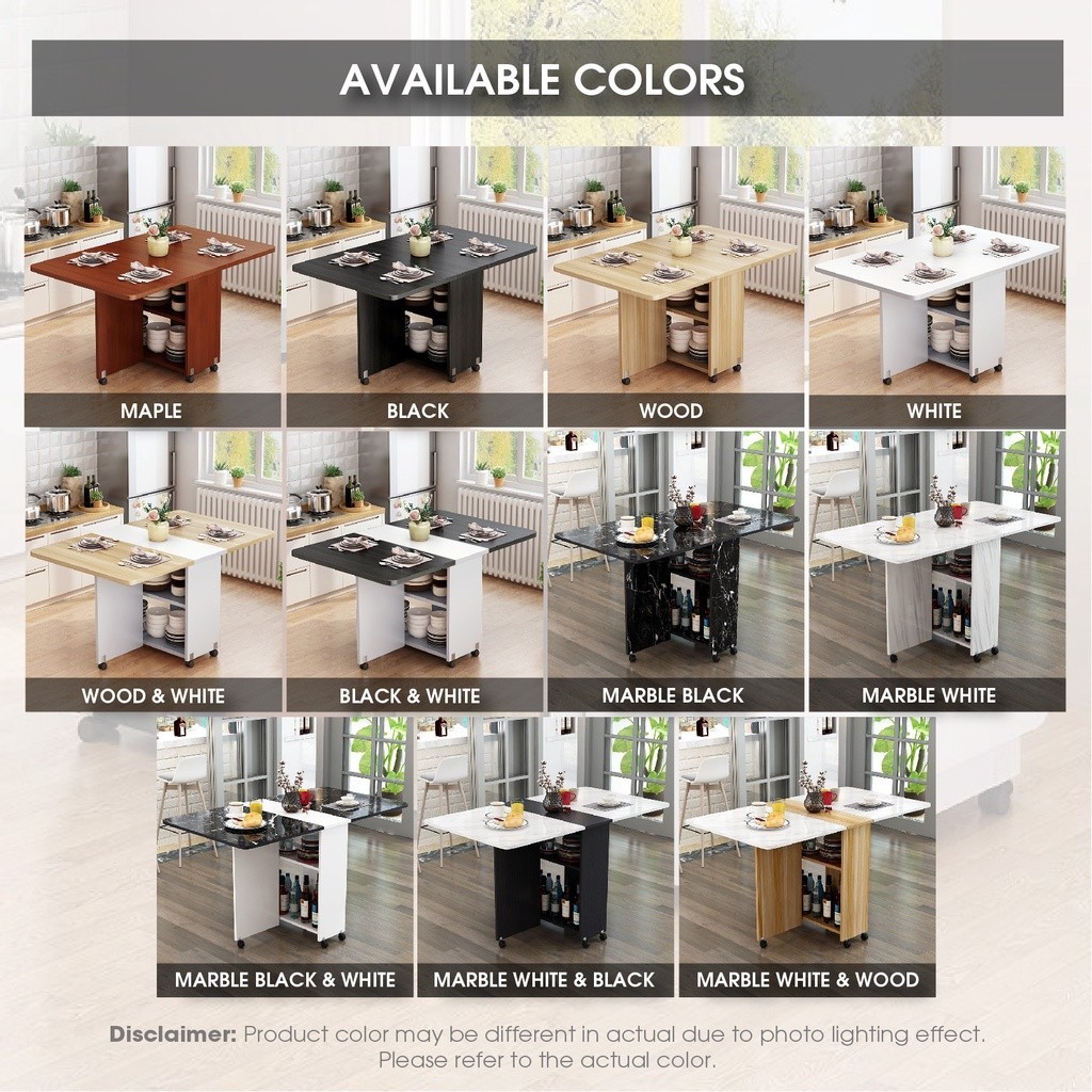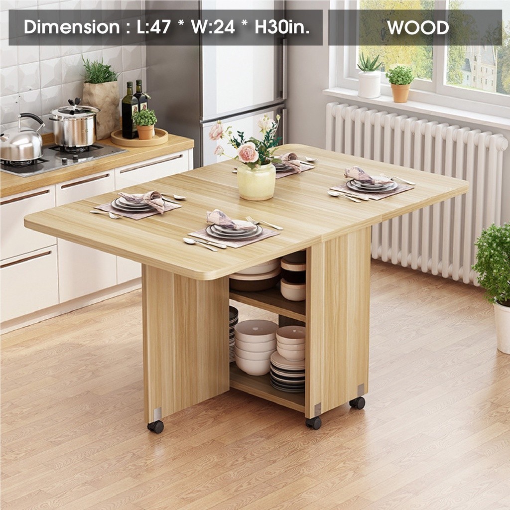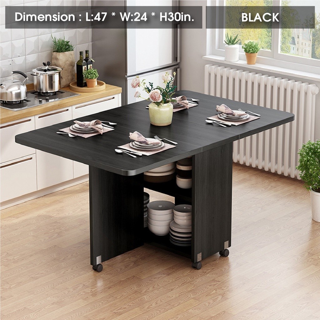 Foldable Dining Table Rectangular Wood Table Modern Minimalist Style Table 6 Seater Portable Table for Indoor and Outdoor use with Rotatable Wheels Extra Storage Round Edges Laminated Wood Kitchen and Dining Furniture Dining Tables