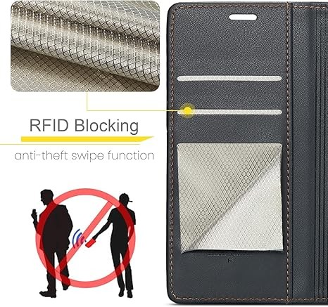 [RFID Shielding Technology&Luxury Kickstand Function] The wallet case is equipped with RFID shielding technology designed to protect your card information from identity theft. With an innovative blocking material, it will make you feel safe wherever you are. The folding line on the back of case allows you to convert the wallet case into a kickstand. The fold book style phone case offers you a comfortable and satisfying visual experience.