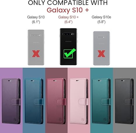 [Compatibility] This wallet case is ONLY compatible with Samsung Galaxy S10+/S10 Plus. Please check the MODEL of your mobile phone before purchasing. This wallet case for Samsung Galaxy S10+/S10 Plus is NOT compatible with other phone models.