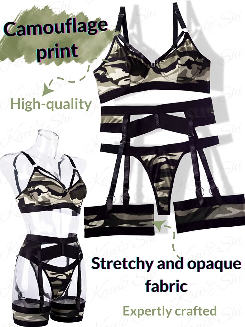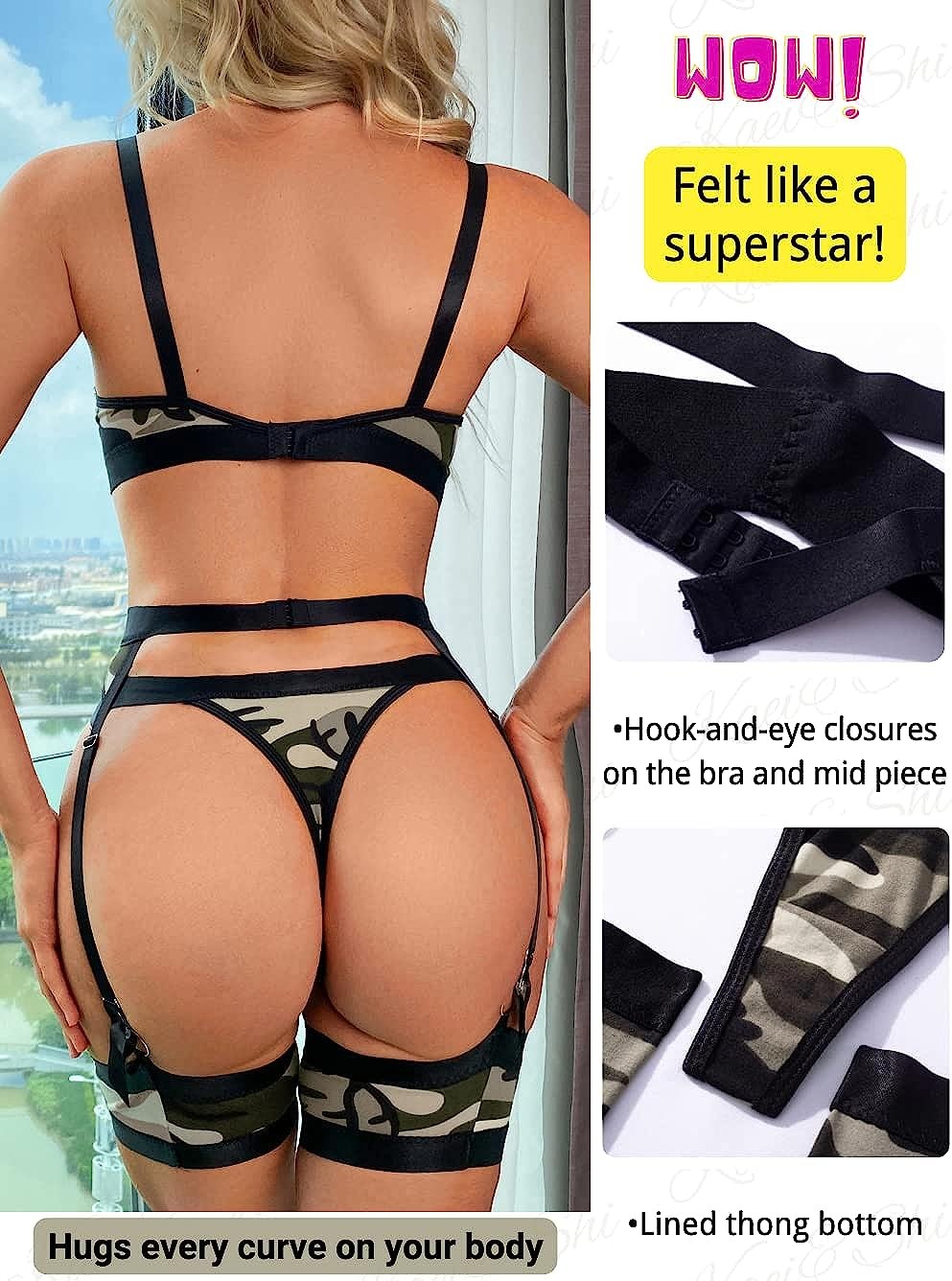 Garter Lingerie for Women,Sexy Lace Lingerie,Sheer Matching 4 Piece Lingerie Set