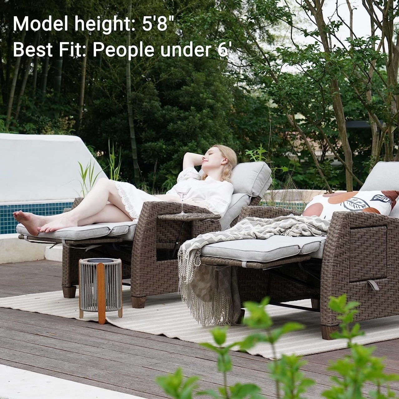 Grand patio Indoor & Outdoor Recliner Chair PE Wicker Patio Recliner with Flip Table Reclining Lounge Chair, Mist Grey