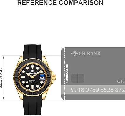 GUANHAO Men's Automatic Mechanical Diving Watch, 40mm Luminous Dial, 100M Waterproof, Luxury Fashion Business Casual Sport Designer Genuine Watch with Calendar, Rubber/Stainless Steel Strap
