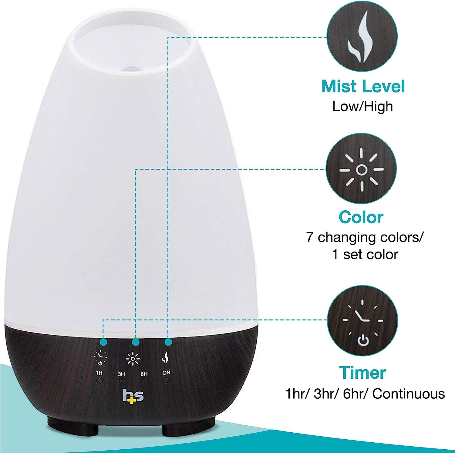 • DIFFUSER FOR ESSENTIAL OILS features a smart touch panel to easily control the lighting, high or low mist mode and a 1hr/3hr/6hr timer that will keep misting until the water runs out.