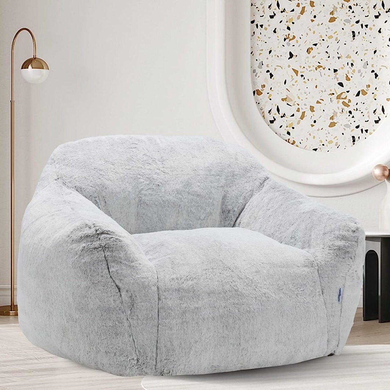 Homguava Giant Bean Bag Chair Sofa High-Density Foam Filled Sofa Chair Large Lazy BeanBag Sofa with Armrests for Living Room, Bedroom (Light Grey)
