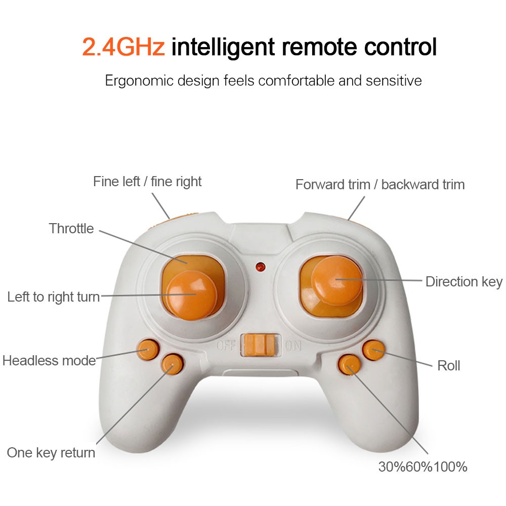 Chức năng: lên/xuống, xoay trái/phải, tiến/lùi, bay ngang trái/phải, chế độ không đầu, quay lại bằng một nút bấm, cài đặt chiều cao áp kế, v.v.
