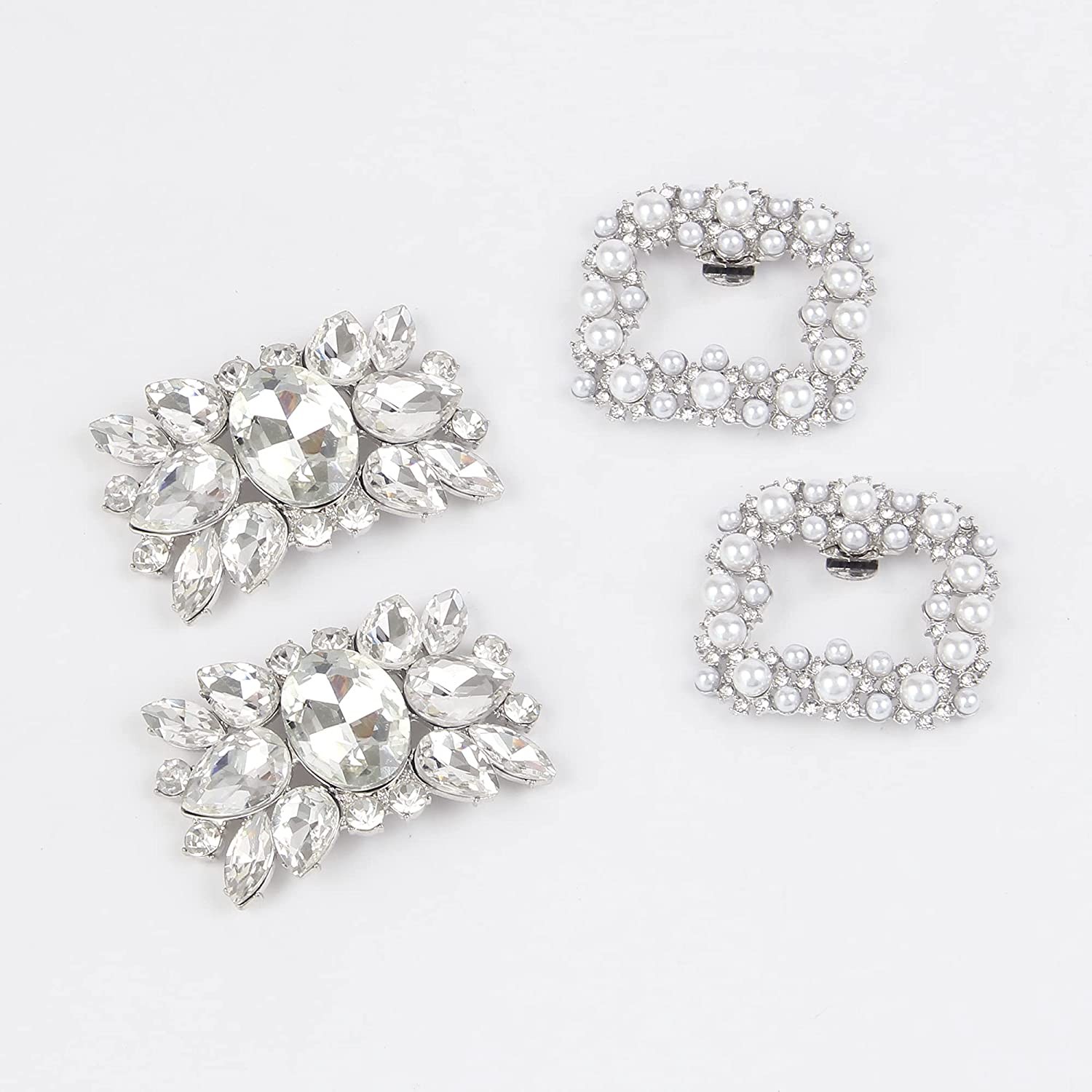 kilofly Elegant Rhinestones Decorations Charms Shoe Clips 2 Pairs