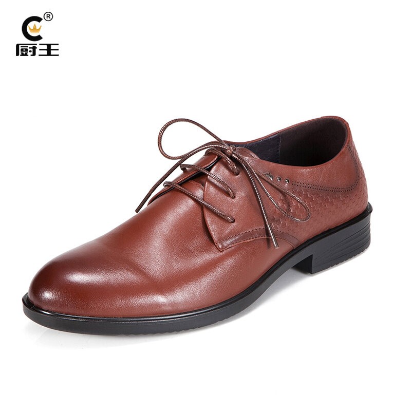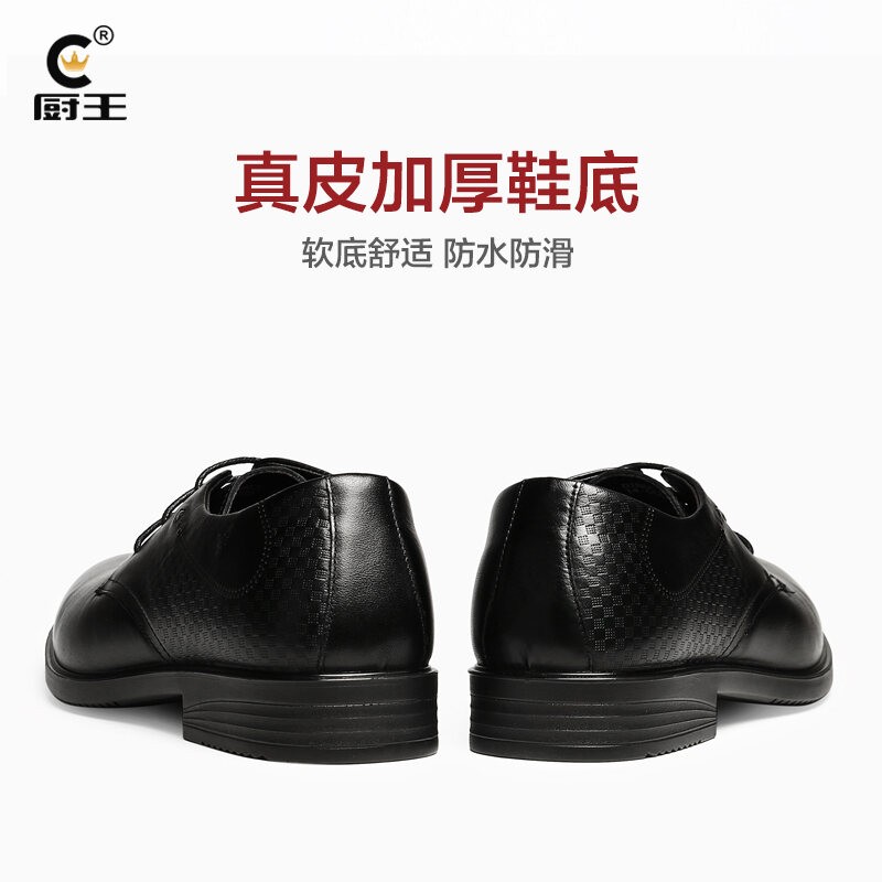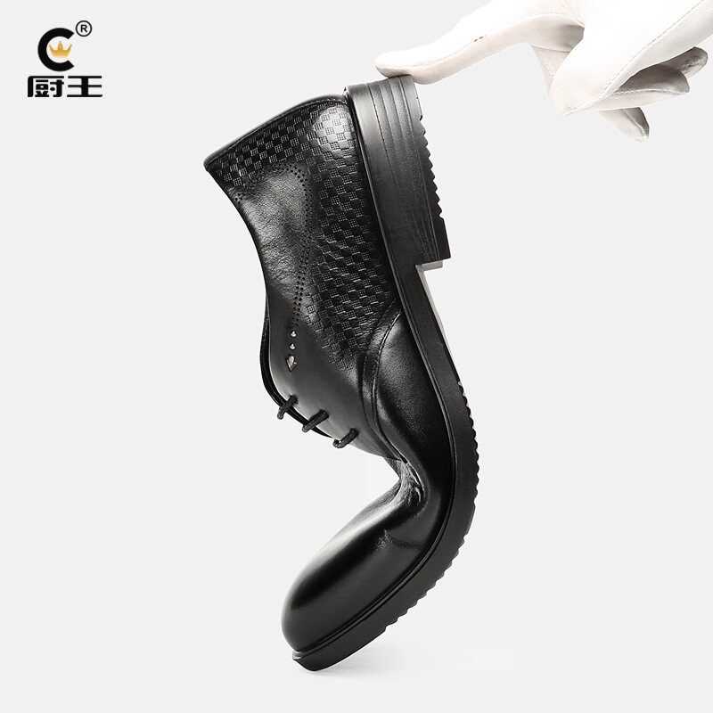 Kitchen King Men's Leather Shoes Genuine Leather Hotel Work Shoes Full-grain Leather Waterproof Non-Slip Kitchen Chef Shoes Soft Bottom Casual
