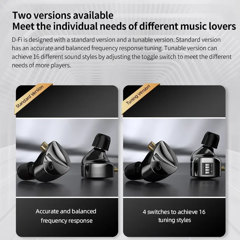 KZ D-Fi Wired Metal In Ear HiFi Monitor Earbuds 4-Level Tunning Switch Bass Headphones Stage Live Headset