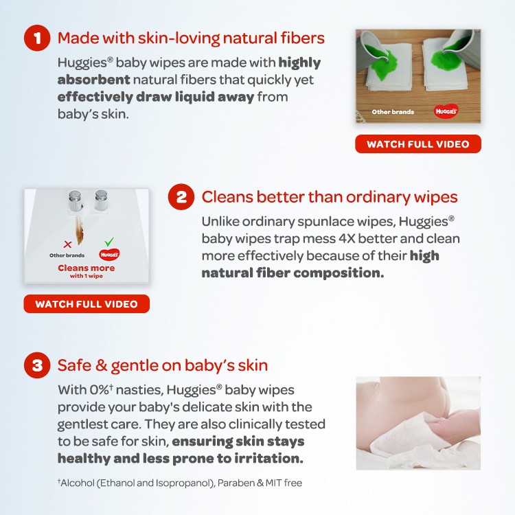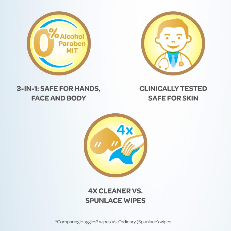 •1 khăn lau Huggies = 4 khăn lau thông thường^