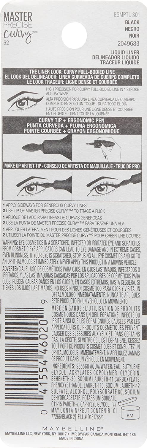 Maybelline New York Master Precise Curvy, Black, 2 Count