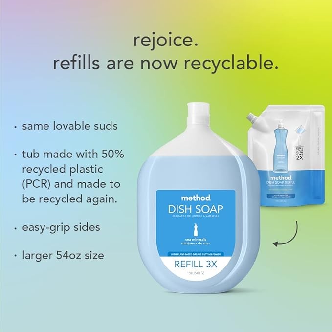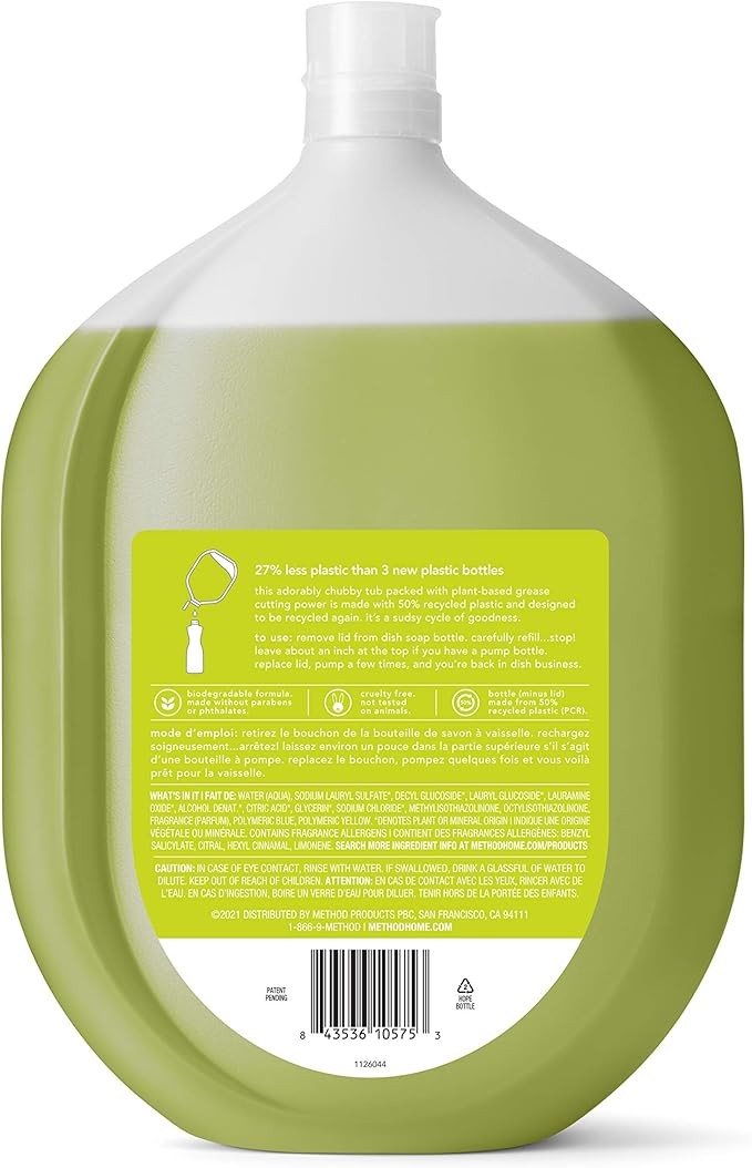 Method Dish Soap, Refill, Lime + Sea Salt, Recylable Bottle, Biodegradable Formula, Tough on Grease, 54 Fl Oz (Pack of 2)