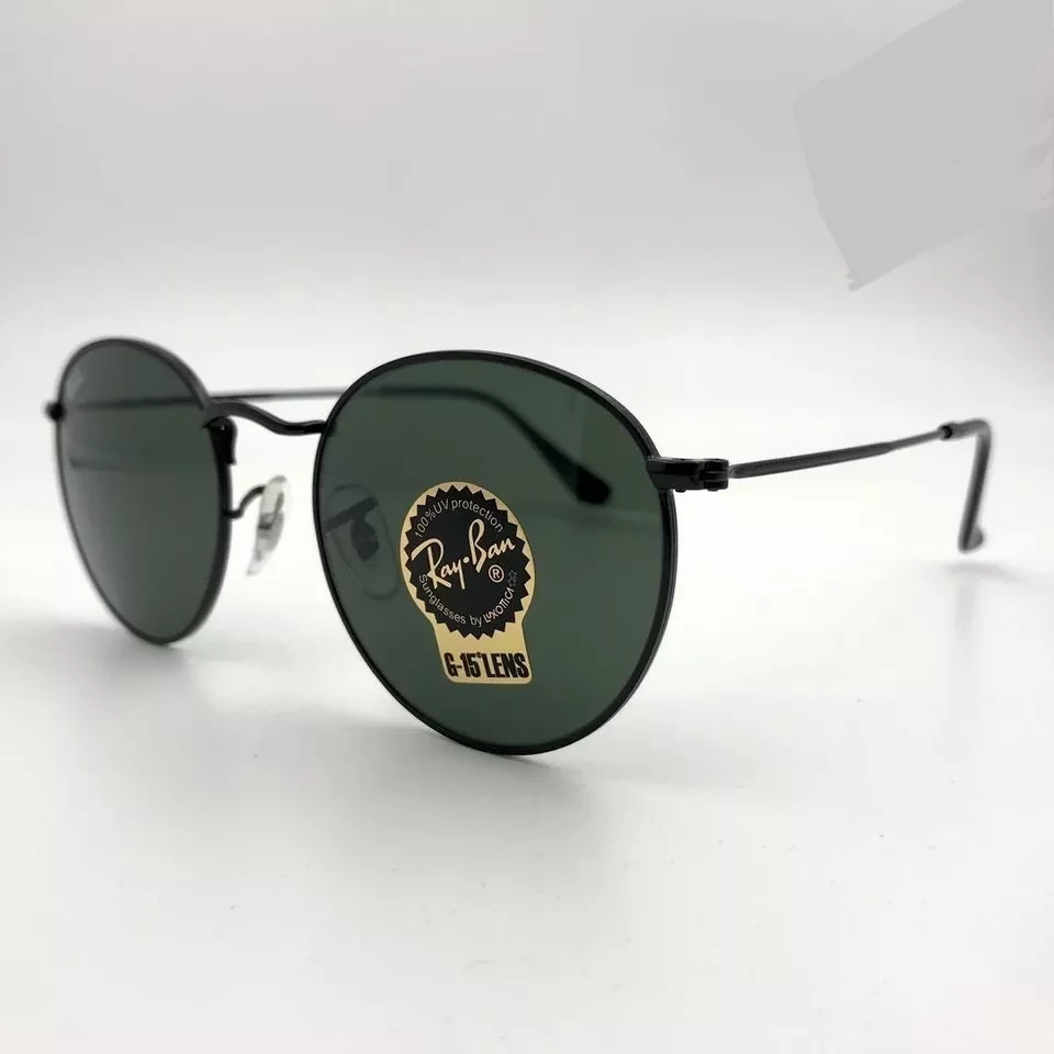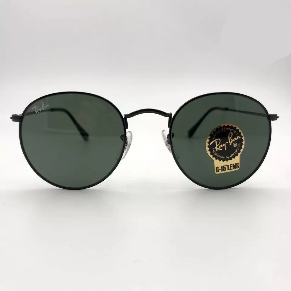New Ray-Ban RB3447 Round Metal Black Frame / Green G15 Lenses Sunglasses