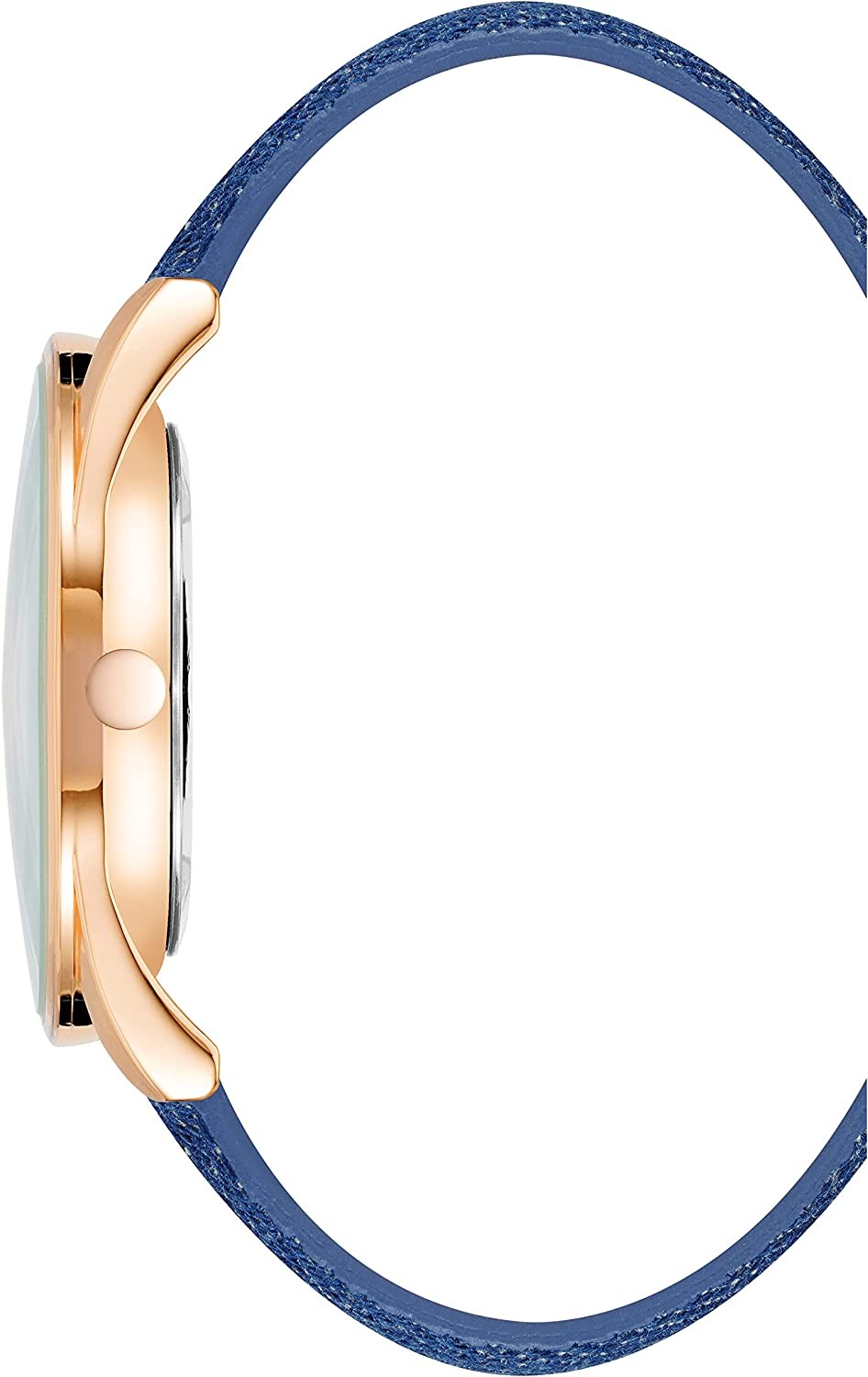 • Domed mineral crystal lens; Matte white dial with rose gold-tone hands and markers; Black printed outer minute track