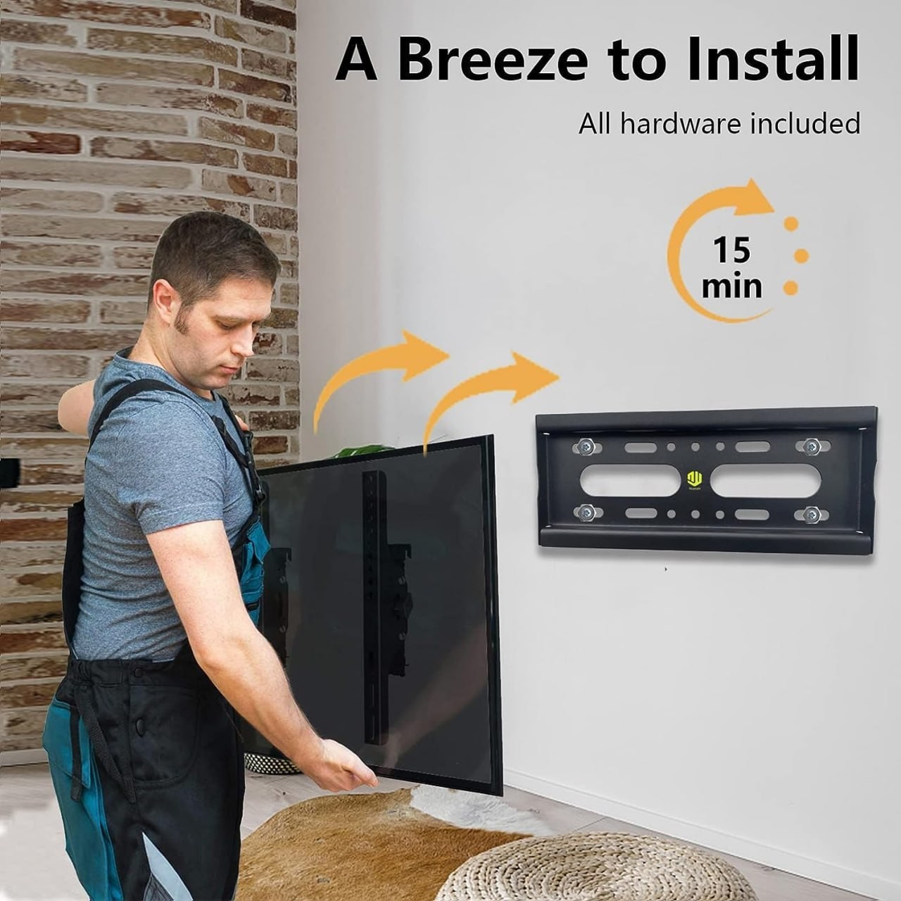 Nuyoah TV Wall Mount Bracket Low Profile Fixed for 14-42 Inch Flat Screen TVs & Monitors Up to 55lbs, Universal TV Monitor Mount Fits 8 Wood Studs Max VESA 200