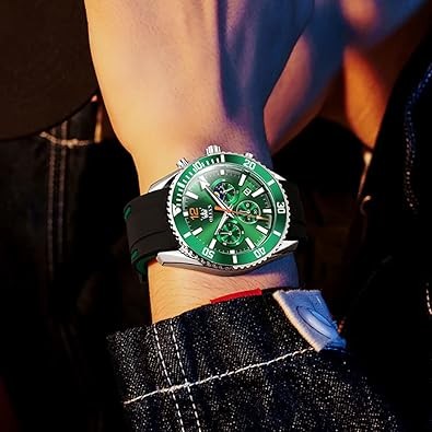 • ⌚ OLEVS Watches Chronograph : Multi-function Quartz Movement ,3 functional little sub-dials for chronograph minute,cPush/pull crown; Uni-directional stainless steel bezel with black top bezel ring; Functional Subdials: 60min, 60sec, 24hr; Super Luminous : Luminous Hands & Calibration , is convenient to read the time in the dark(Luminous function needs to be activated by light)