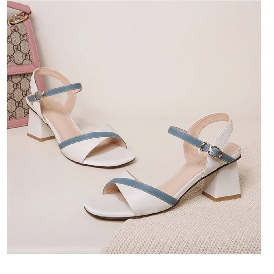 PSF987 Da Xiaoni 2021 new sandals mid heel high heels women's one word sandals with chunky heels fashion casual shoes women's shoes