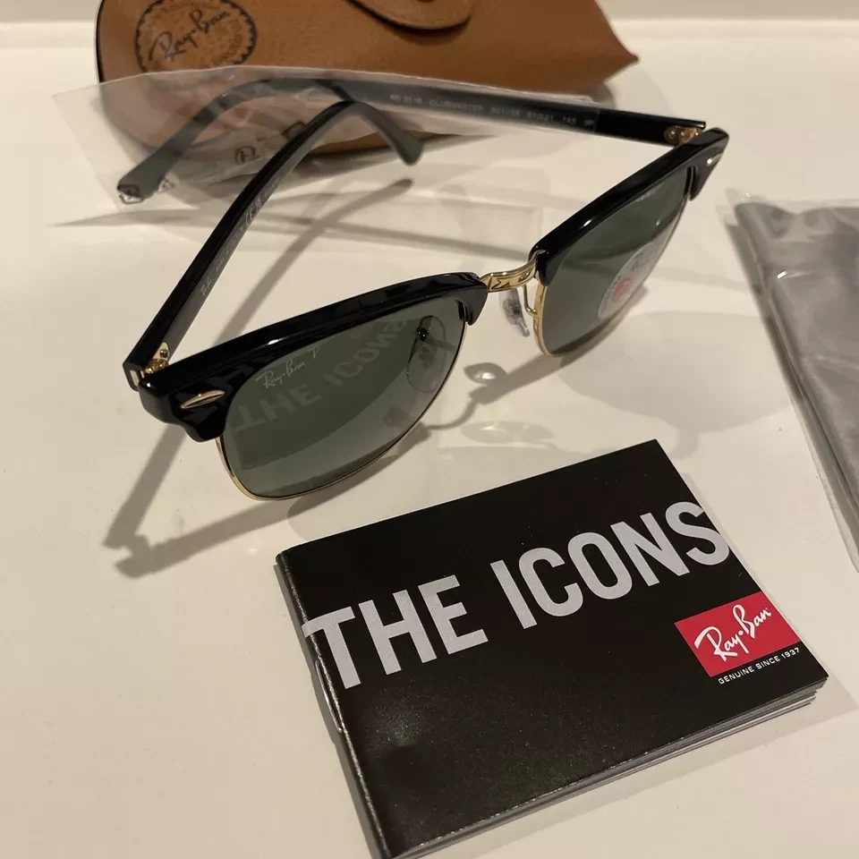 Ray-Ban Sunglasses RB3016F CLUBMASTER W0365 Black Green Authentic Polarized NWT