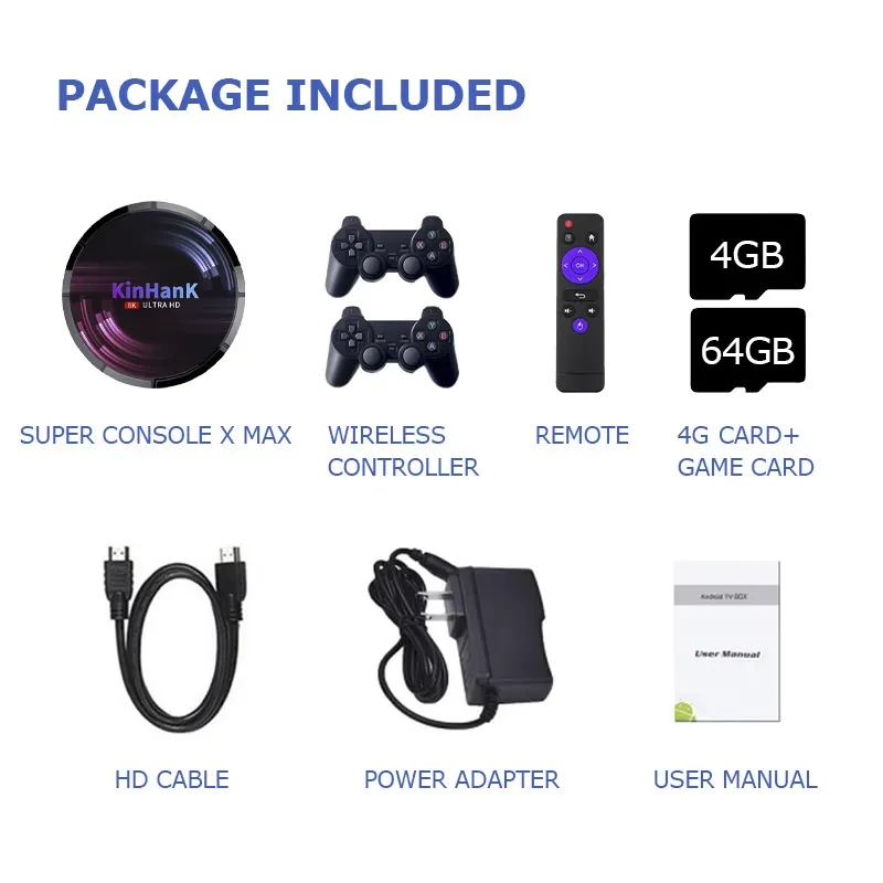Super Console X Max là máy chơi game đa chức năng ba trong một mới nhất, Android TV 9.0+ hệ thống EmuELEC 4.2+CoreELEC mới nhất trong một, tích hợp hơn 50000 trò chơi, cùng gia đình và bạn bè sống lại những trò chơi cổ điển, chơi trò chơi trực tuyến, xem phim truyền hình miễn phí, duyệt và tìm kiếm trên web, v.v., bạn có thể tận hưởng cuộc sống thông minh.