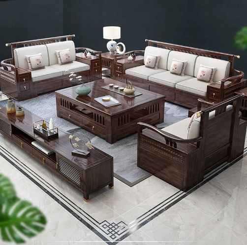 Salon Solid Wood Sofa Combination Zijin Silk Sandalwood Armrest Drawer Storage Living Room Floor Wohnzimmer Sofas Home Furniture
