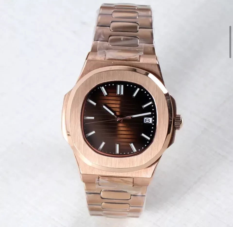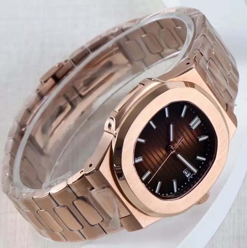 Seiko NH35 Rose Gold “Nautilus” Sapphire Mod 41 mm Watch Automatic 100 M Dive
