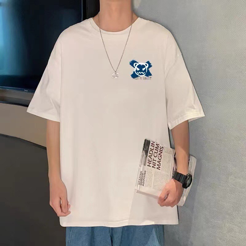 Short-sleeved T-shirt men's summer trend men's clothing 2023 new loose half-sleeved top pure cotton cartoon print T-shirt