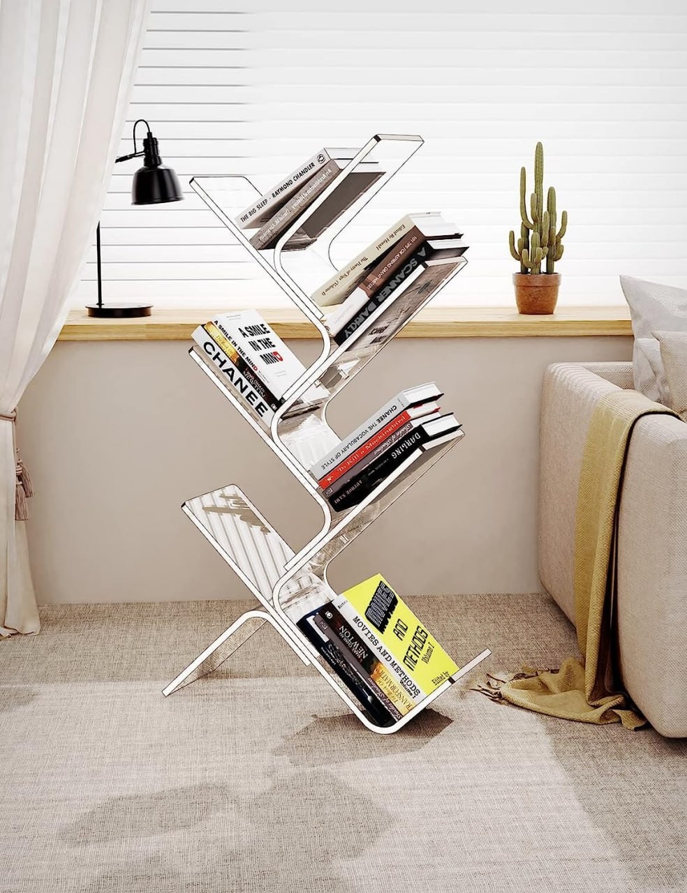 solaround Acrylic Tree Bookcases Modern Clear Wall Bookshelf Standing Bookcase Tree Organizer Decorative Storage Rack(6-Tier Floor, Clear)