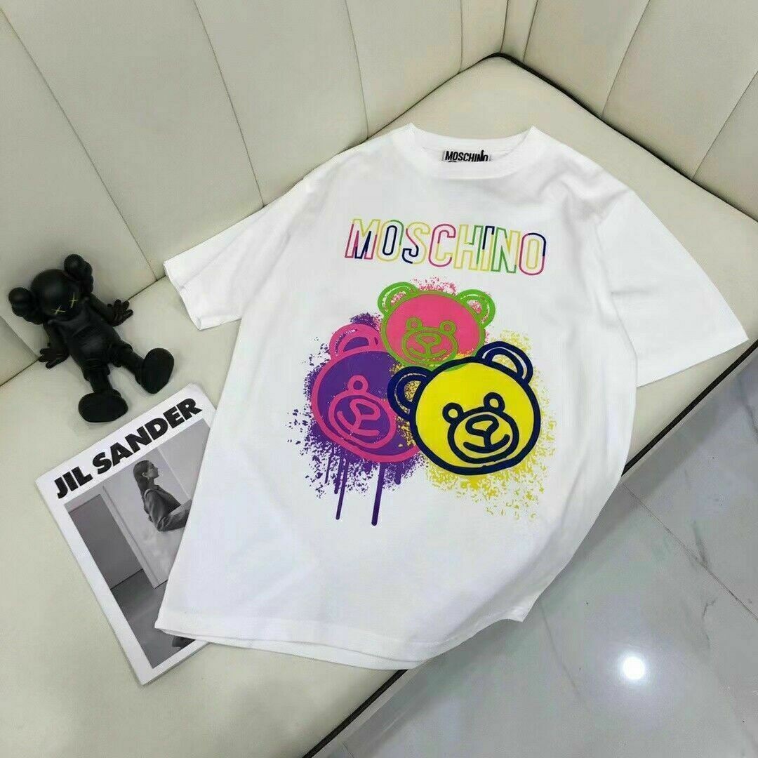 Solid Color Graffiti Bear T-Shirt Moschino Men Women Couple Cotton Short Sleeve
