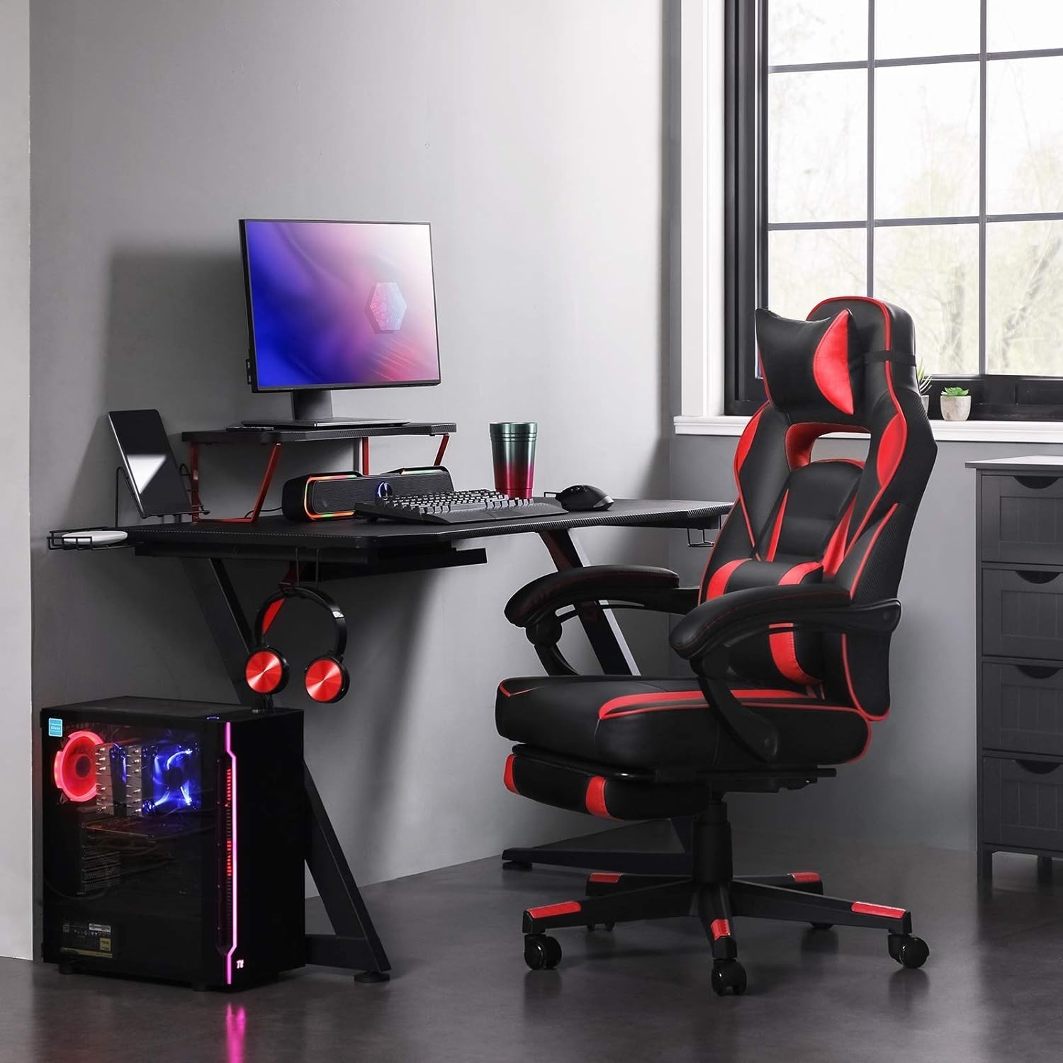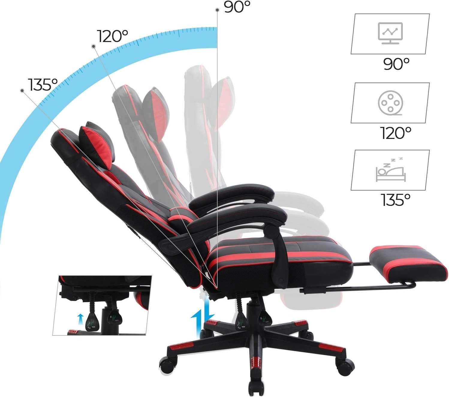 SONGMICS Racing Gaming Chair, Adjustable Ergonomic Office Chair with Footrest, Tilt Mechanism, Lumbar Support, 330 lb Load, Black and Red UOBG073B01