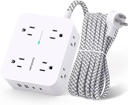 • 【12 IN 1 Power Strip & 2.2 IN Wide Space】- 3-side design power strip surge protector with 8AC widely outlets and 4 USB (2 USB C) charging ports can power up to 12 devices simultaneously. That makes it easier to make the plugs not covering any outlet, and the 2.2 inchces widely spced in between outlets, larger than standard socket, fit big adapters without blocking each other. The compact design saves more space, suitable for the home, office, and college dorm room essentials