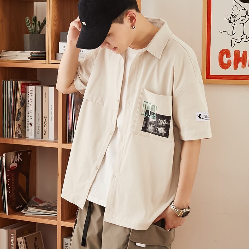 Tangshi 2023 summer new short-sleeved shirt men's Japanese design tops all-match casual trendy cool jacket ins