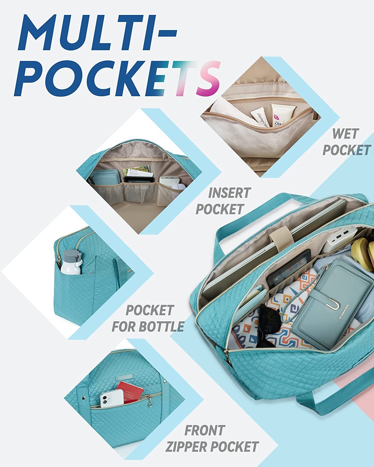 • Travel Friendly-Independent shoes bag: Perfectly separate your dirty shoes from clean clothes.1 waterproof pocket: Separate dry and wet items, can put toiletries, towels. Front zippper pocket for easy access to your passports and mobile phones.