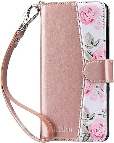 ULAK Compatible with Samsung Galaxy S10 Plus Wallet Case, Floral Flip PU Leather Card Holder Kickstand Full Protective Phone Case for Galaxy S10 Plus 6.4 inch, Rose Gold Flower