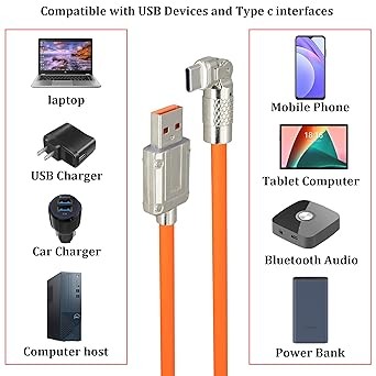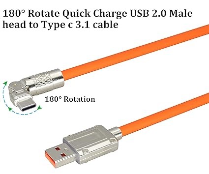 • [What will you get?]: 1*orange Type-C male to USB A male Cable whit 180°Rotating Fast Charging Cable