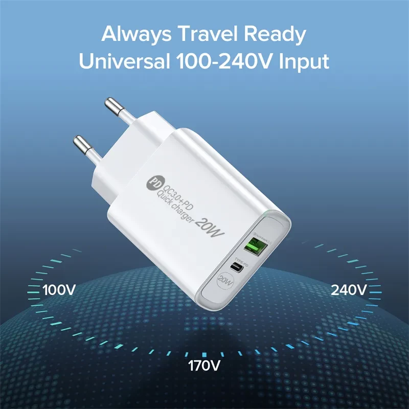 USB C Fast Charger 20W Quick Charge 2 in 1 Adaptor For iPhone 13 12 Pro Max Xiaomi Samsung Huawei QC 3.0 4.0 Moble Phone Charger